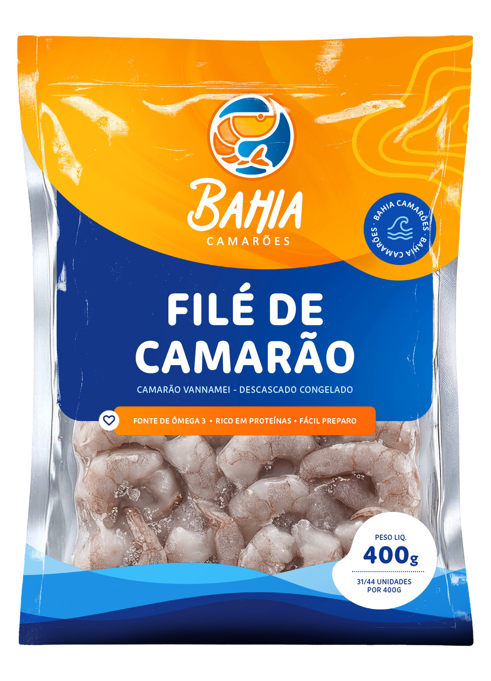Seguindo o mesmo padrão de cultivo de tilápias, o filé de camarão é totalmente eviscerado e está disponível em 4 tamanhos:51/60 (P), 41/50 (M), 31/40 (G) e 21/25 (XG)