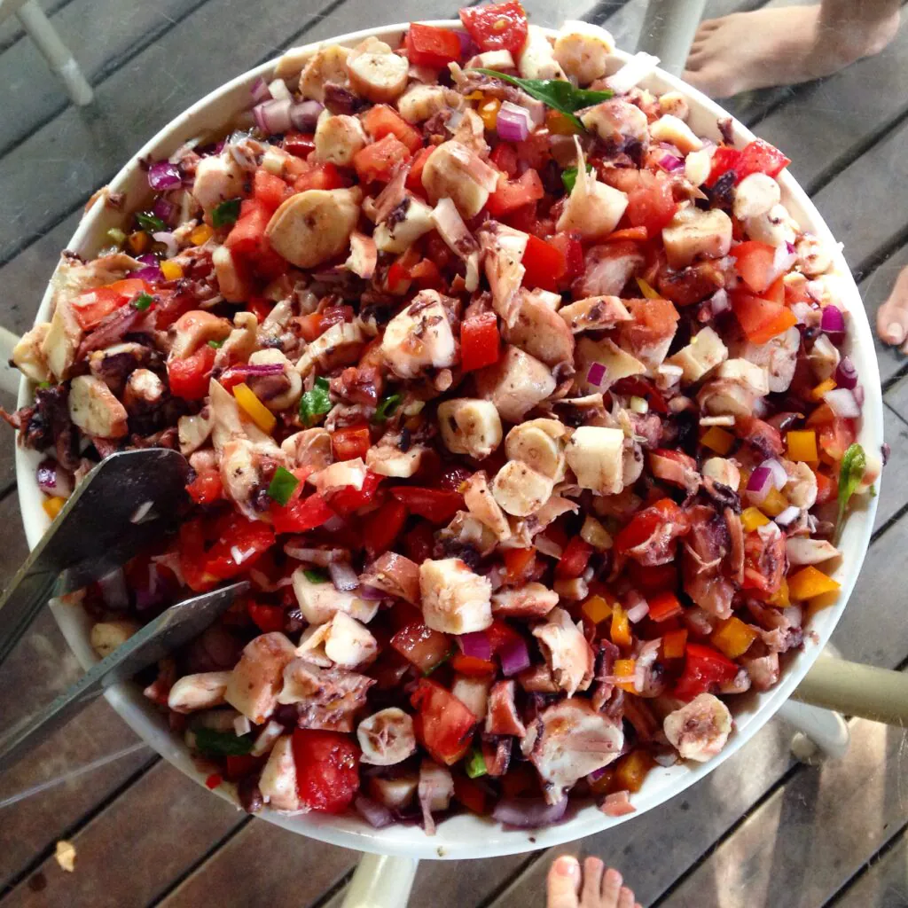 Técnica fácil para cozinhar o polvo e evitar a frustração da carne borrachuda. Para obter um polvo macio e saboroso, se possível, prepare-o na véspera. Quanto mais tempo o polvo descansa na geladeira, apurando os sabores, mais delicioso ele fica.